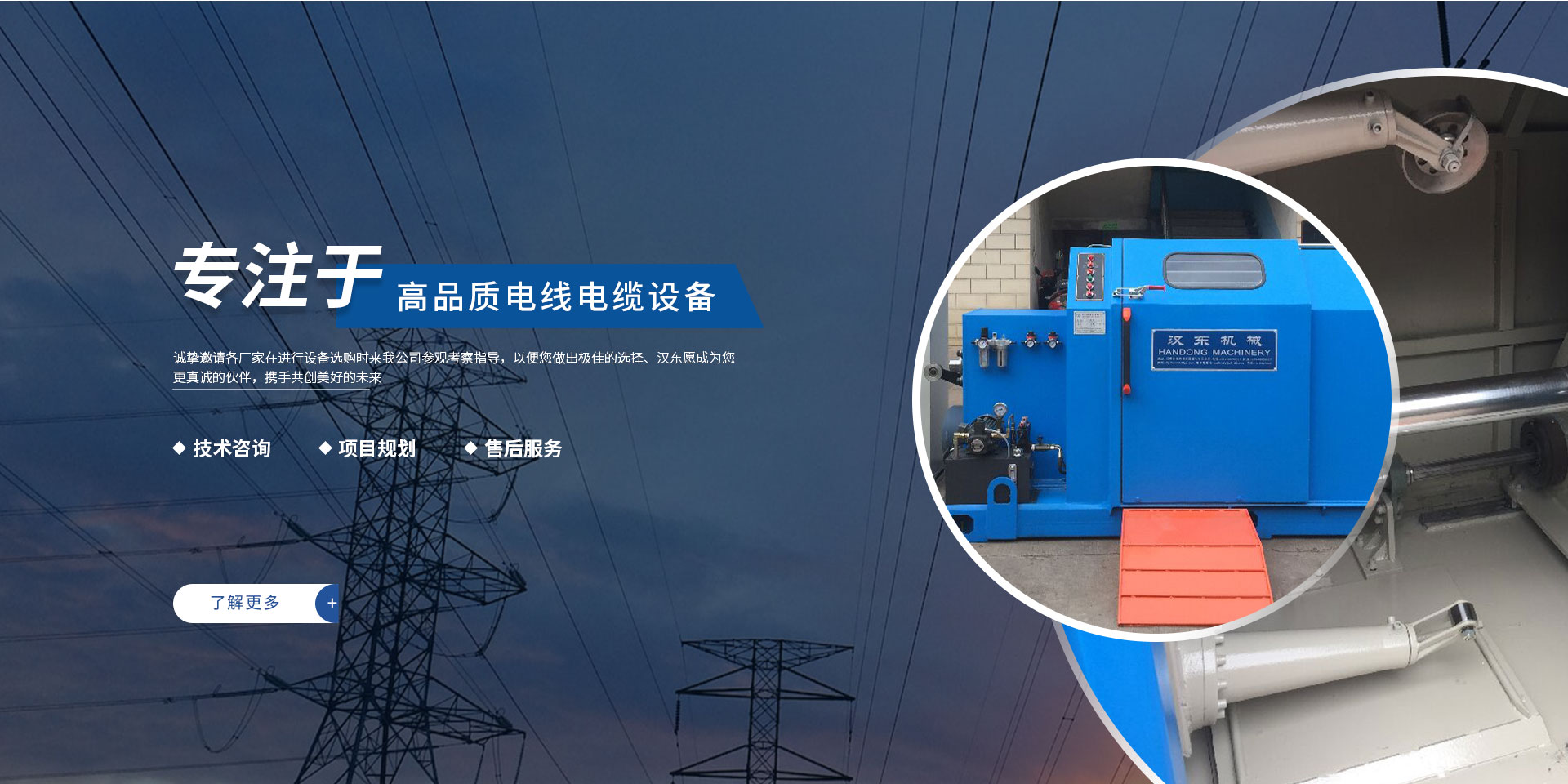 常州漢東機(jī)械始創(chuàng)于2006年,是集電線電纜機(jī)械設(shè)計(jì)、開(kāi)發(fā)、制造、安裝、調(diào)試為一體化的高科技企業(yè)。本公司自開(kāi)業(yè)以來(lái),積極引進(jìn)日本,歐美等國(guó)外電線電纜設(shè)備之先進(jìn)技術(shù),先后成功推出了達(dá)到行業(yè)先進(jìn)水平的電線電纜設(shè)備,主要產(chǎn)品有擠出、繞包、束線、成纜等電線電纜固定設(shè)備。在提供系統(tǒng)設(shè)備的同時(shí),還向客戶提供售前技術(shù)咨詢、項(xiàng)目規(guī)劃、以及售后服務(wù)。我公司本著“以人為本、科技先導(dǎo)、用戶為上”的宗旨,為客戶提供牢靠的產(chǎn)品與省心的服務(wù)。漢東愿成為您更真誠(chéng)的伙伴,攜手共創(chuàng)美好的未來(lái)!